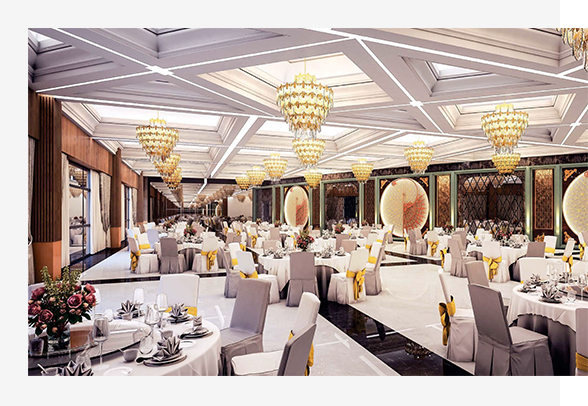 Located at NSCI, Worli, Mumbai, the Royal Halls venue offers you a luxurious ambience and décor with colourful paintings adorning its walls. The venue’s perfect lighting and acoustic system blend well with the stunning surroundings making it a grand venue for a lavish wedding and pre-wedding functions with a capacity of 1200 guests.